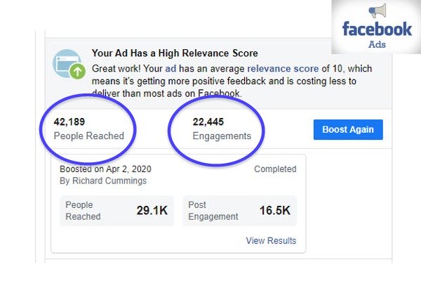 Check out the latest Facebook and AdWords results Richard achieved: perfect relevancy scores, low cost, high engagement.
